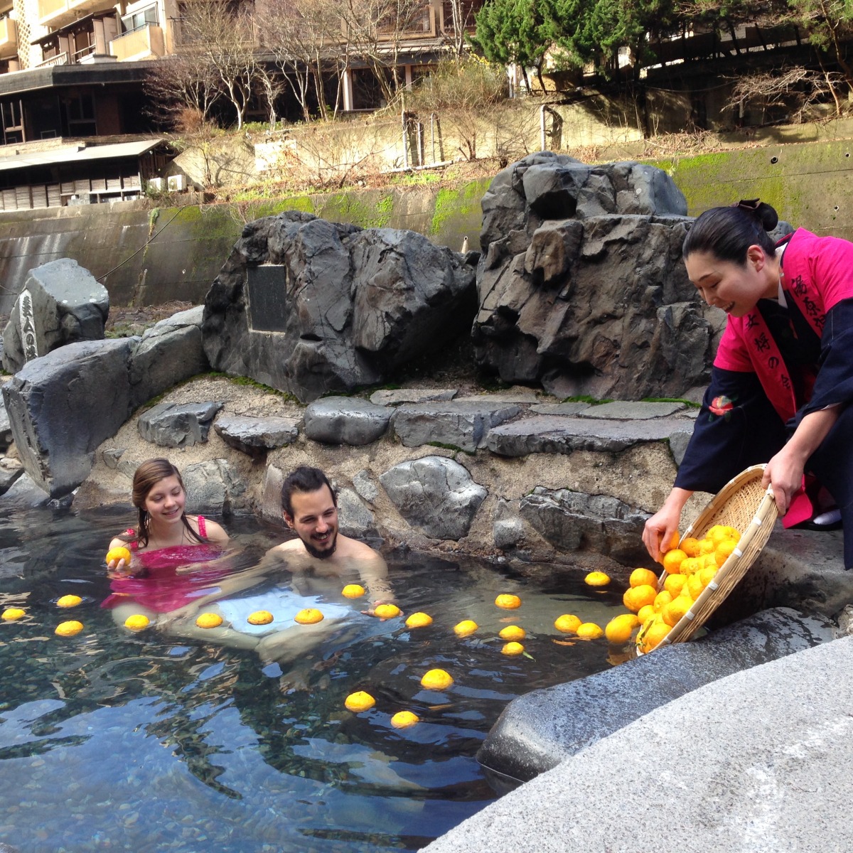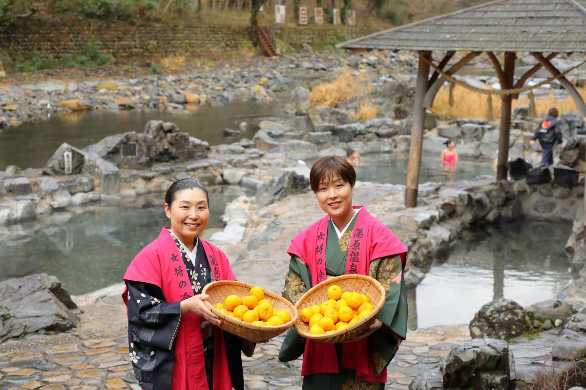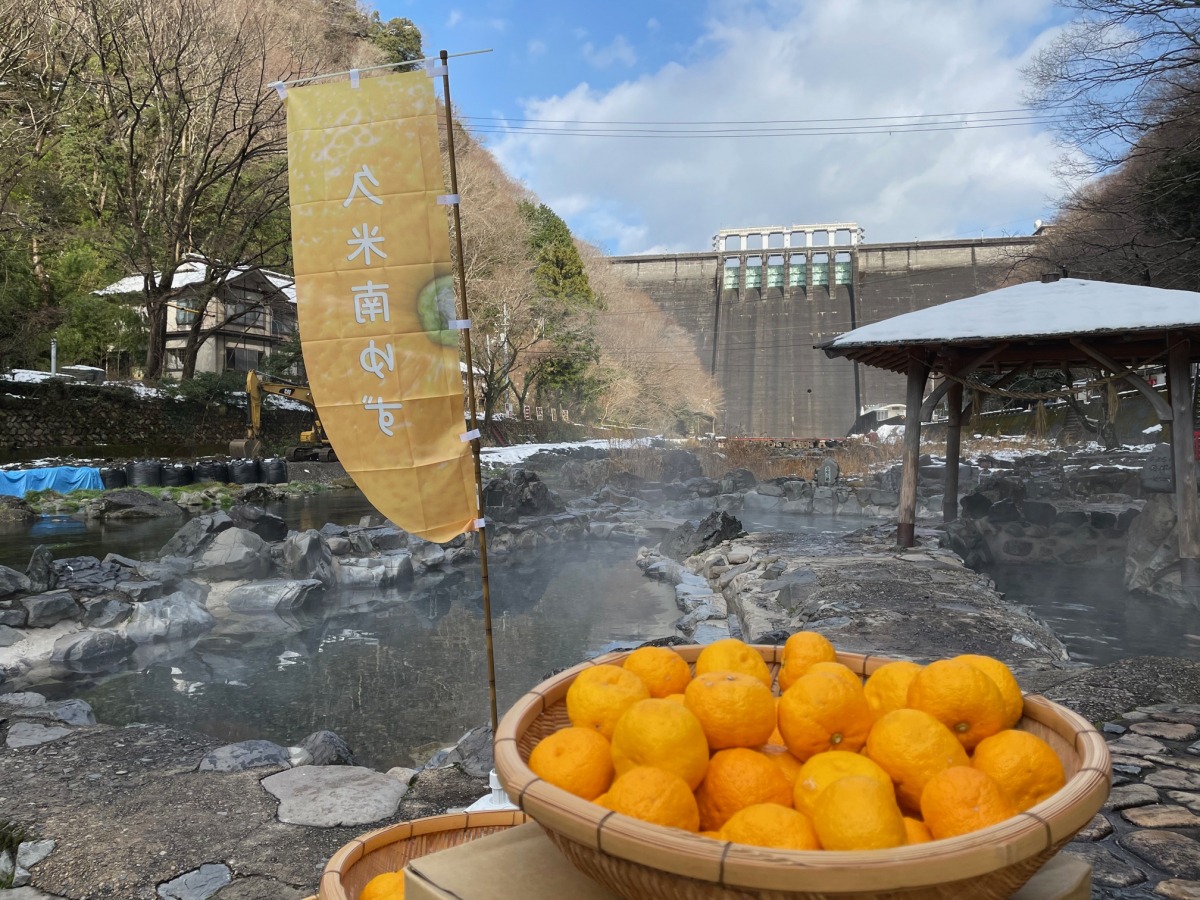 冬至の日、湯原温泉の露天風呂「砂湯」に11:26から626個(語呂合わせで626=ロテンブロ)のゆずが浮かべられます。湯船に投入するゆずは、今年も香り高い岡山県の久米南町産。冬至の日に入ると風邪をひかないといわれている“ゆず湯”で、体の芯からあたたまって。