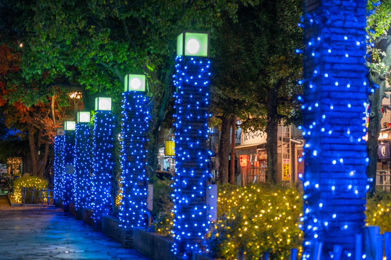 西川に輝く幻想的なイルミネーション