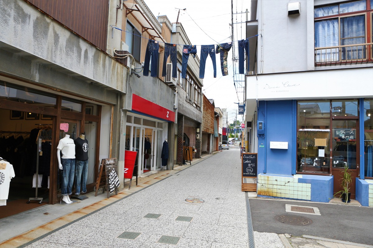 国産ジーンズの聖地・児島で注目を集める児島ジーンズストリート。「旧野﨑家住宅」から野﨑の記念碑までの約400mの通りに地元ジーンズメーカーが軒を連ねています。世界に誇る「ジャパンデニム」のオリジナリティー溢れるジーンズが購入できるとあって、最近では海外からも多くの観光客が訪れています。周辺にはジーンズ以外の魅力的なショップやカフェが揃っていて、1日中楽しめるエリアです。