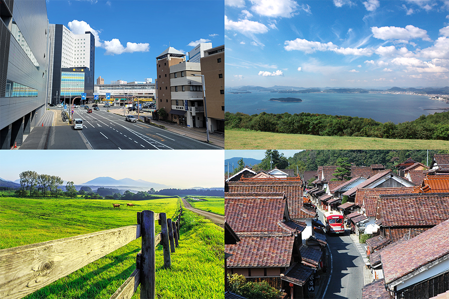 「市街地」から車で30分圏内に、海、山、古い街並みがあり、田舎の風景や島、高原など豊富なロケーションがあります。