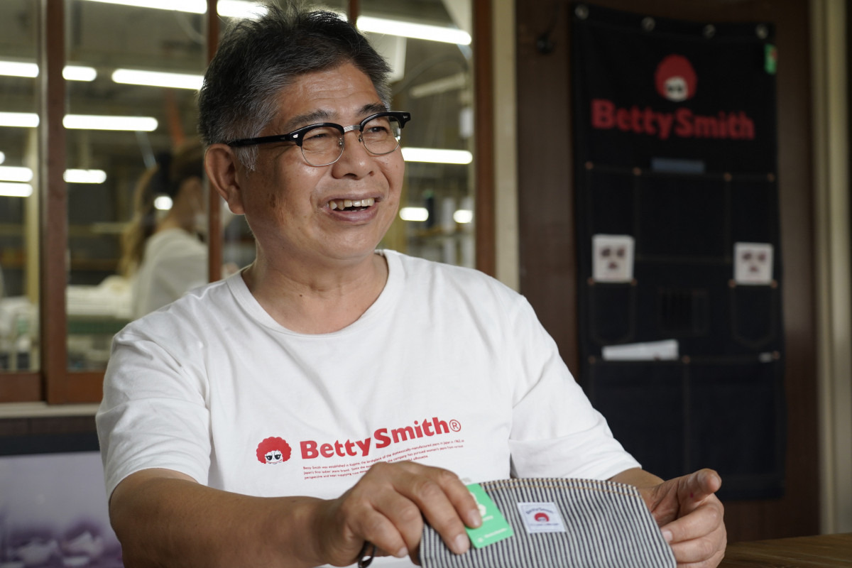 父・邦雄氏の頃はジーンズはまだ若い産業で、繊維産業の浮き沈みの激しさを肌で感じていたという大島さん。しかし、親の仕事を継ぐのは当たり前だと思っていたそう。大学卒業後は「問屋に行けば小売業やメーカーのことがわかる」と経営コンサルタント会社勤務の先輩に勧められ、総合問屋「宮入」に就職。そこで外側から繊維業界のことを学んだといいます。ベティスミスに入社したのは平成元年。本格的にジーンズ産業に携わるようになりました。「うちは工場を所有しているので、縫製や裁断などの行程もすべて自前でできる。素材の調達ルートも確保しているので、希望を反映した商品をスピーディーに提案することが可能でした」。大島さんはそれまで作り手主体で製造販売していたものを小売店(消費者)の意向を聞き、それを取り入れた商品を提案するなど新しいスタイルを生み出しました。それこそが、今では当たり前に耳にする“営業企画”です。「この言葉、私が言い出したのが最初じゃないかな」と回想します。