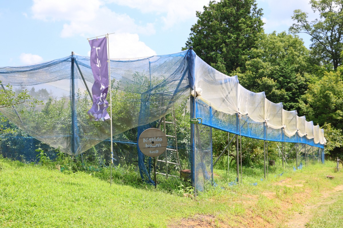吉備中央町はブルーベリーの生産量が県下No.1です!梅雨が明け、ブルーベリーが最も甘くなるシーズンを迎えた今、吉備中央町に4つの農園を持ち、様々な品種を楽しめ、入園中は時間制限なしで食べ放題の「西田農園」におじゃましてきました。この日、市街地では気温37度を超える猛暑日でしたが、吉備高原の標高の高いところにある農園は30度くらいで、日差しは強いですが、高原の風が気持ちよく抜けていました。
