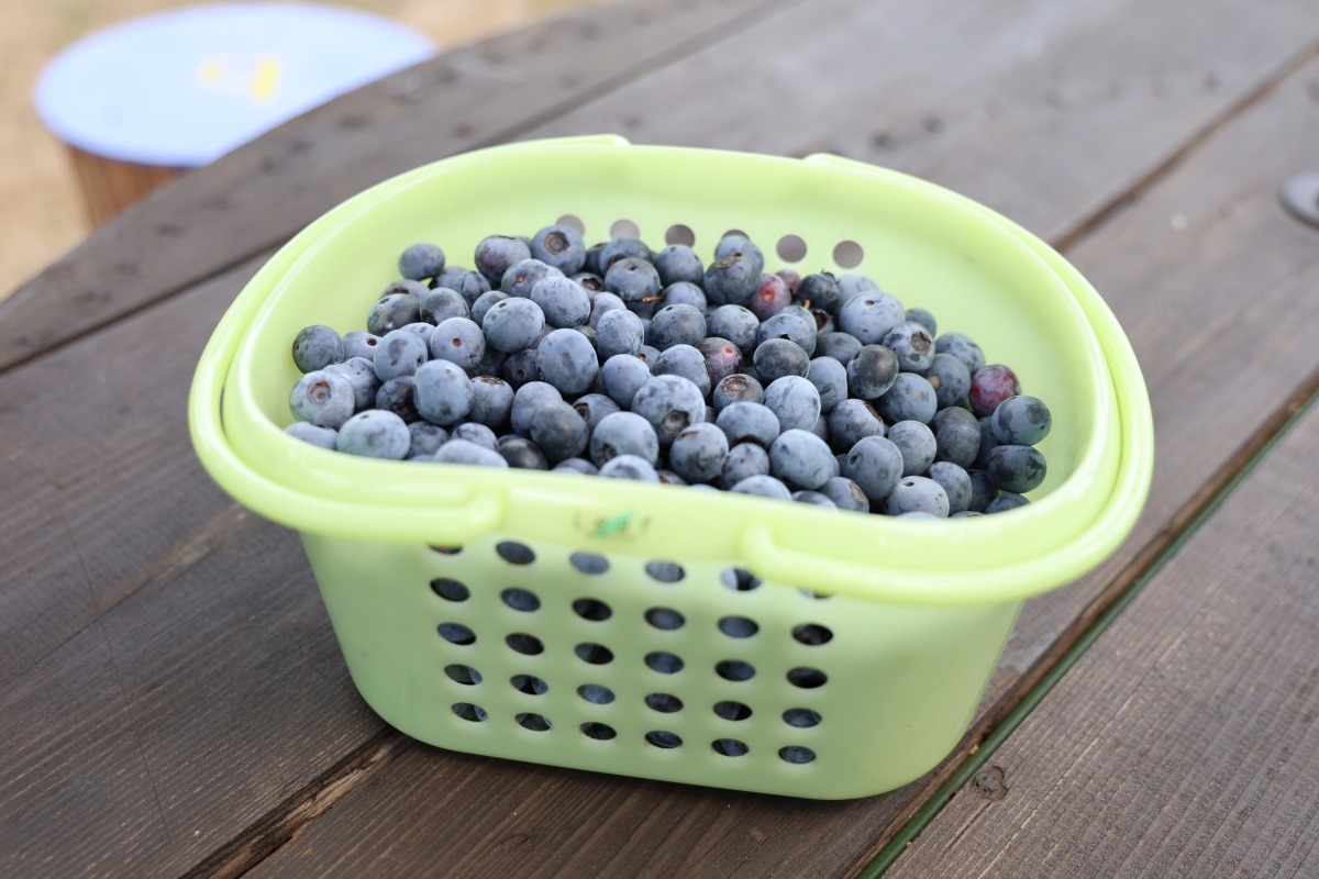 第4農園からスタートし、第2農園までで結構たくさん採れました!スーパーで見るブルーベリーよりも断然粒が大きくて、色つやもいいです!