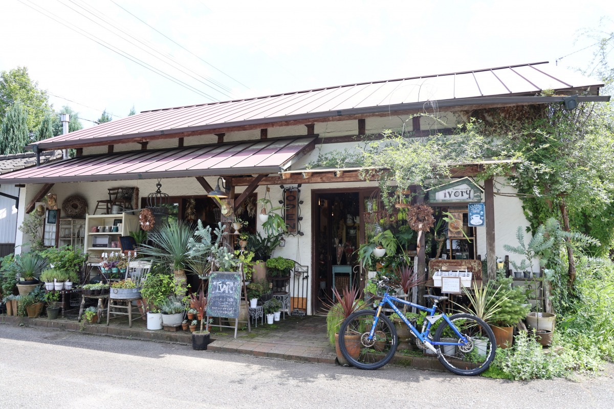 ブルーベリー狩りの後は、「西田農園」からすぐ近くのカフェ「Flowaer and cafe 花空間 ivory」へ。干からびた身体で吸い込まれるようにおじゃましました。