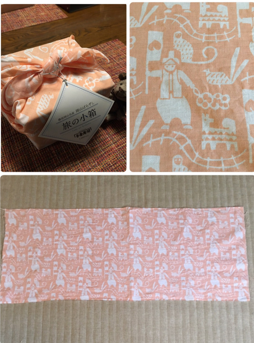 そして、このパッケージになっているピンク色の布がすごくかわいいと、我が家で話題です。よく見ると、桃太郎の柄になっていておしゃれ! 持ち帰り必須です。