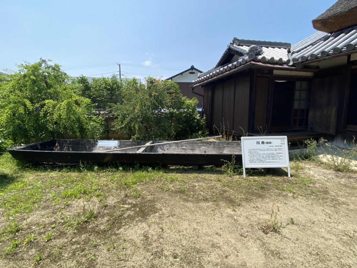 庭には川舟が展示されていました。夢二生家記念館のまわりは今でも田園風景が広がっています。夢二が幼い頃は、水路のあちこちでこういった川舟が行き交っていたそう。