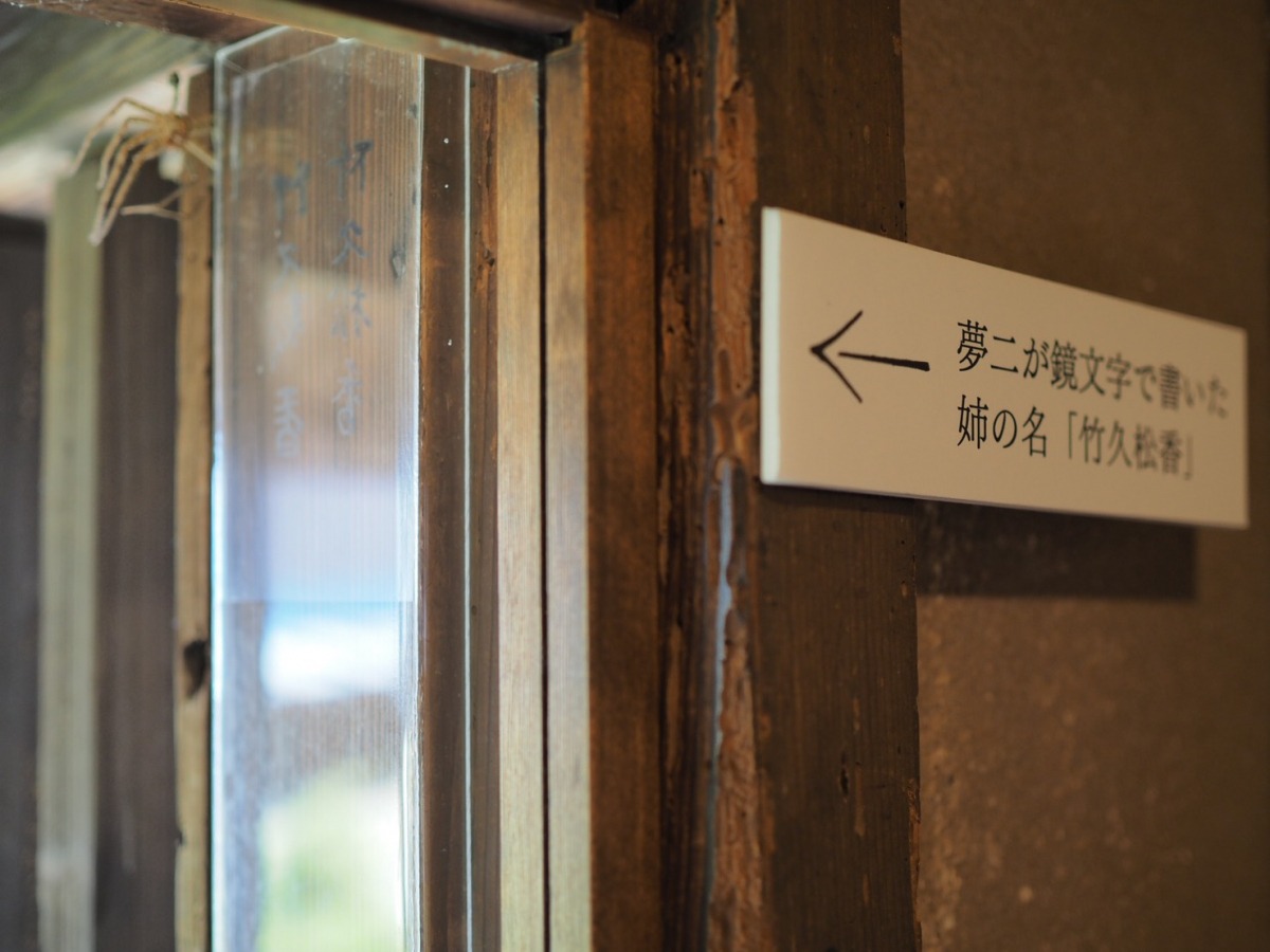 小さな部屋の窓には「竹久松香」姉の名前が鏡文字で書かれています。