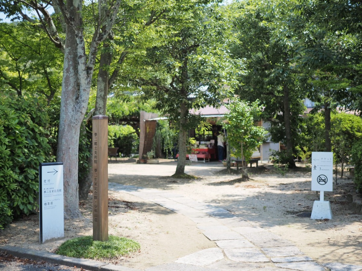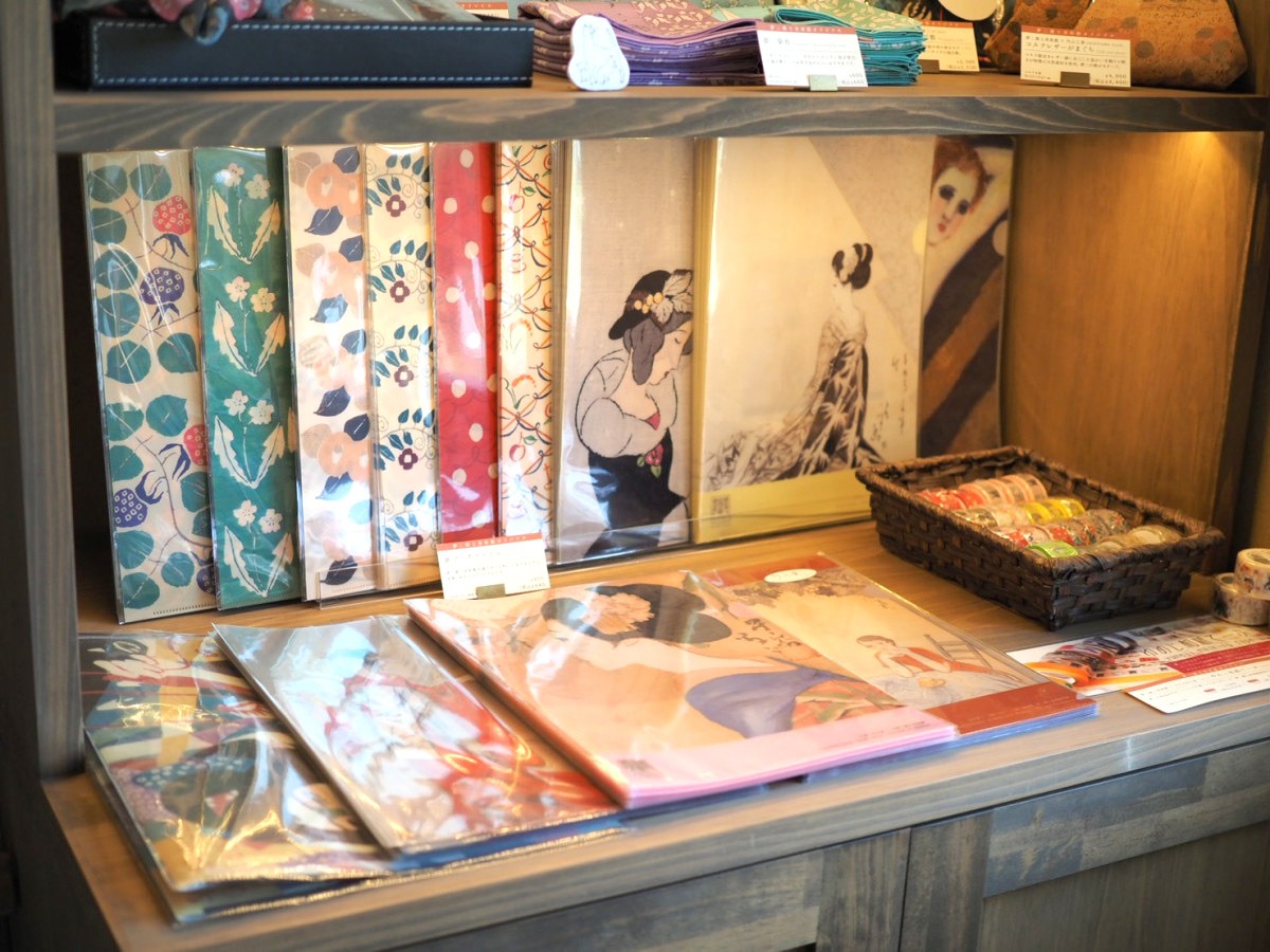 オリジナルの夢二グッズの販売はもちろん、善哉美作番茶セット(ぜんざい+美作番茶+山椒昆布)、抹茶お点前体験セット(季節の和菓子+抹茶)などが味わえます。