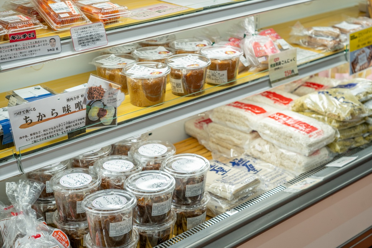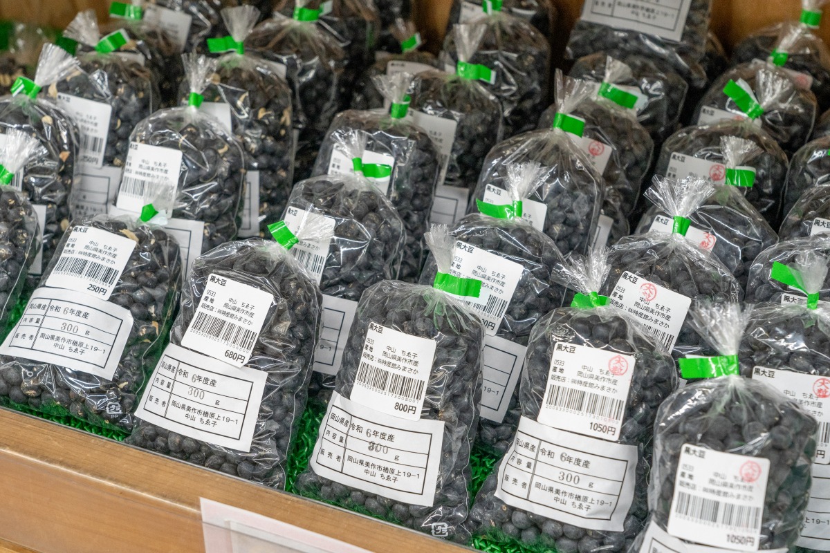 地元特産の黒豆をはじめ、季節の新鮮野菜や美作産の米、豆腐や味噌などの加工品、お茶、どぶろくや日本酒等の美作の地酒が並びます。また、イノシシやシカを扱う食肉処理施設「地美恵の郷みまさか」で加工されたジビエ肉も扱っています。併設のレストランでは、シカ肉を使ったカレーやイノシシ肉を使った定食メニューも提供されています。