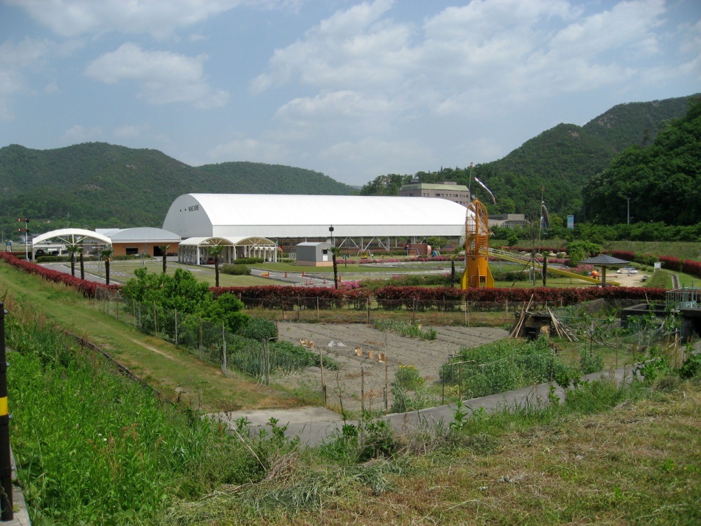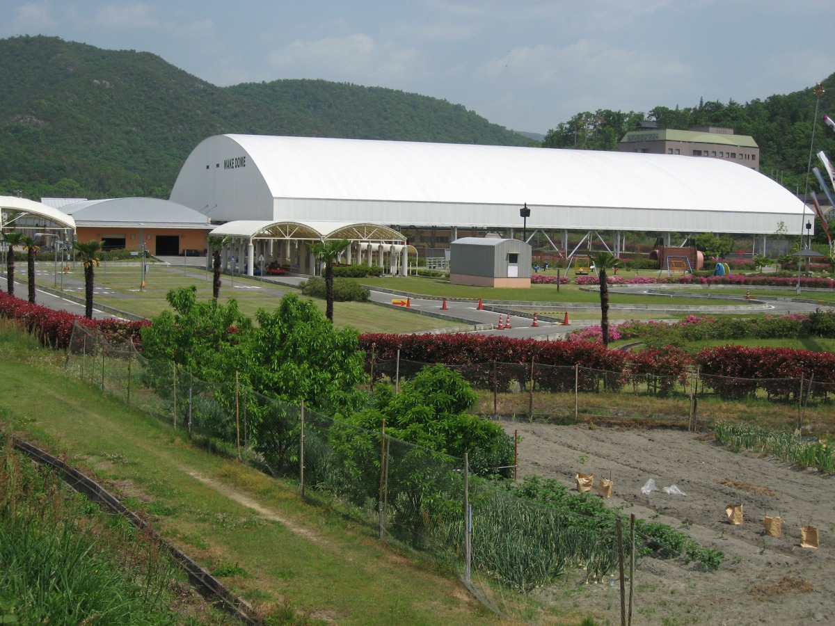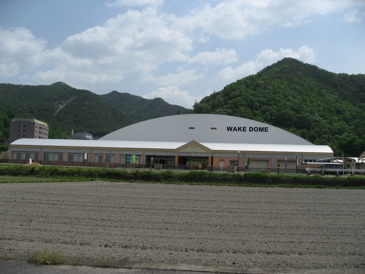 天候や夏の強い日ざしを気にすることなく、様々なスポーツやイベントを行うことができます。グラウンド面は真砂土で4,200平米(70m×60m)あり、フットサル、グラウンドゴルフなら2面確保できます。和気鵜飼谷温泉のすぐ隣にあるので、合宿等での利用にも便利です。