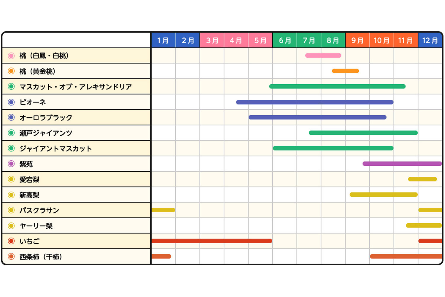 - 桃:7月上旬~8月中旬頃まで ※桃が無くなったら早期終了の場合あり