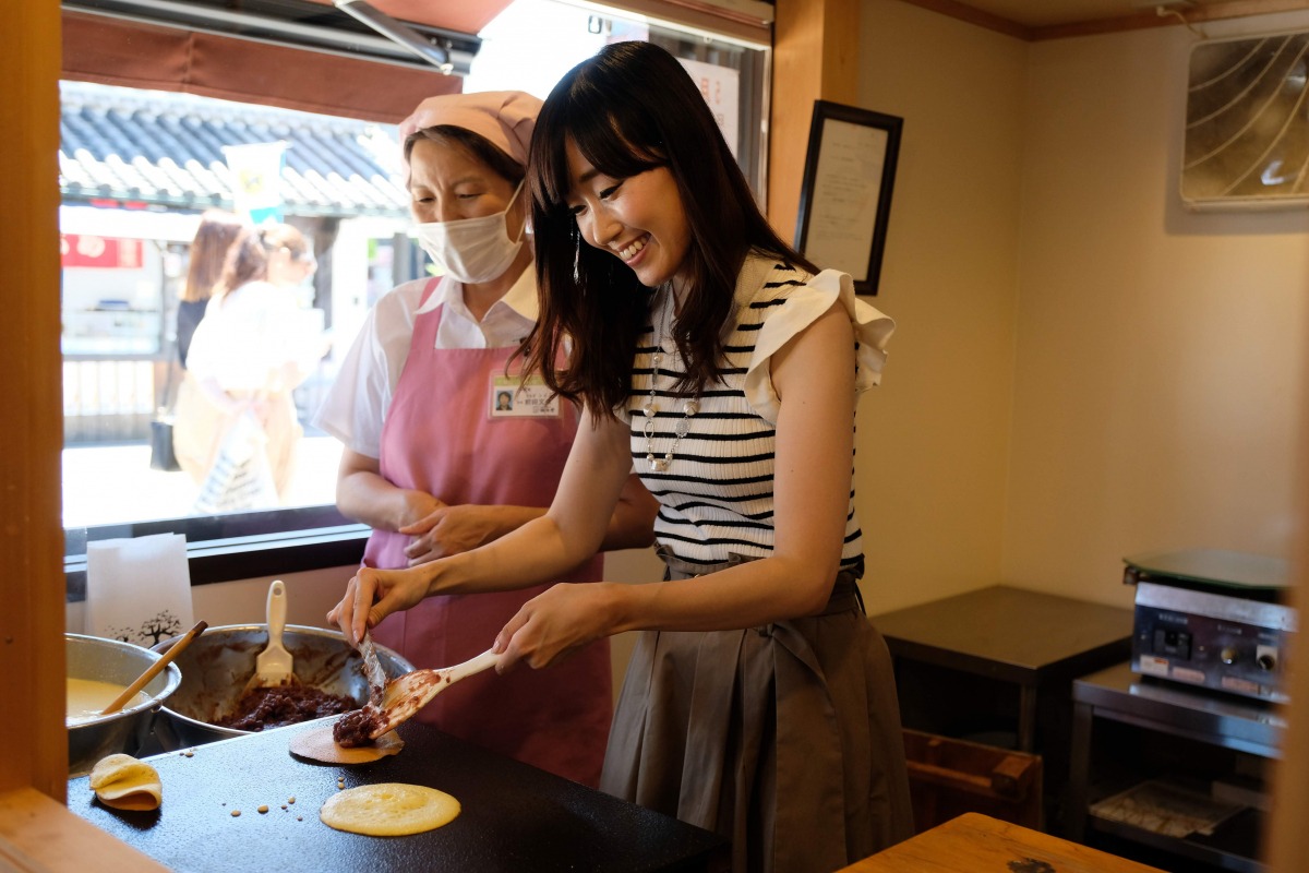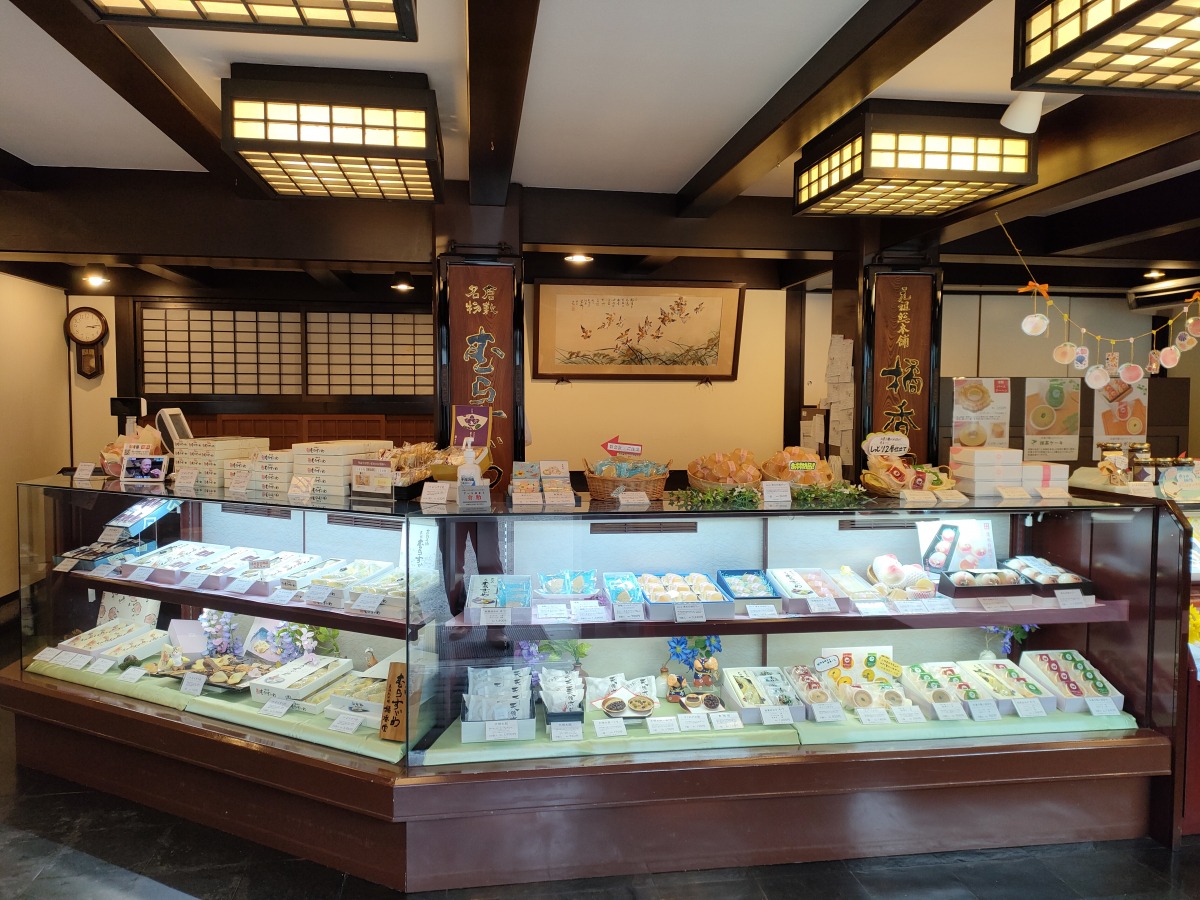 倉敷美観地区入口にある、倉敷名物「登録商標・むらすヾめ」の元祖の店。和菓子、洋菓子の販売を行っています。むらすゞめの手焼き体験コーナーやカフェも併設しています。