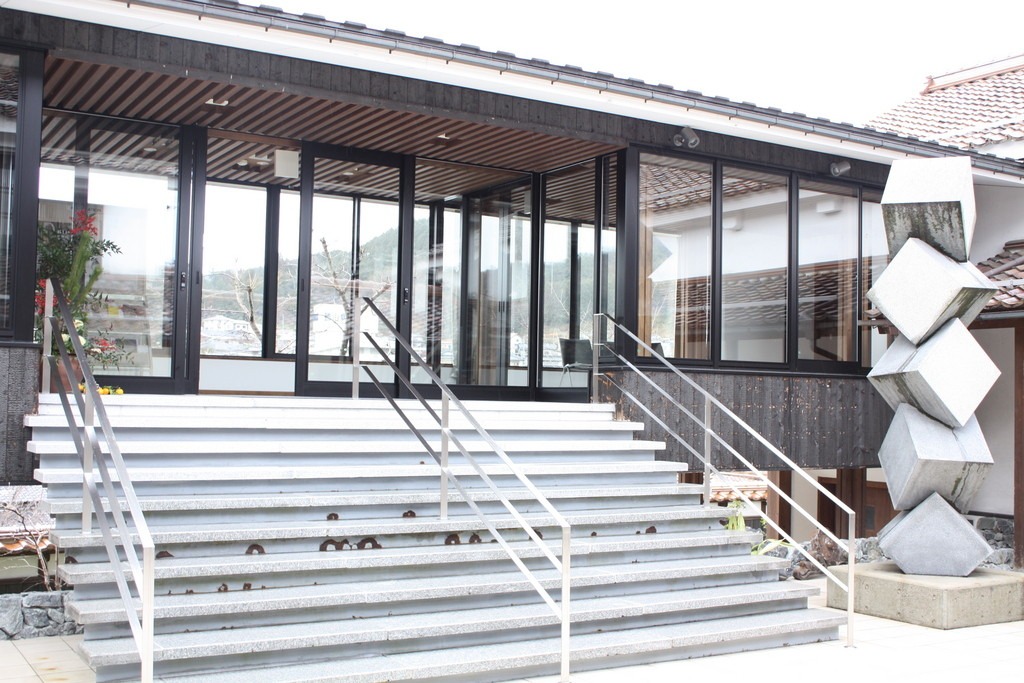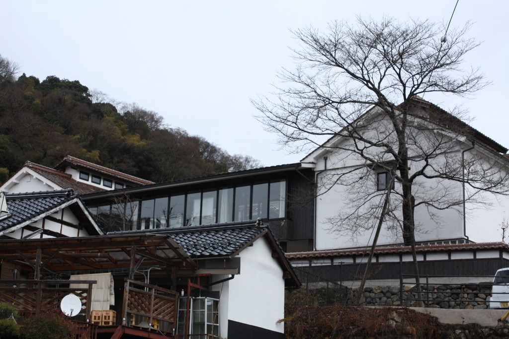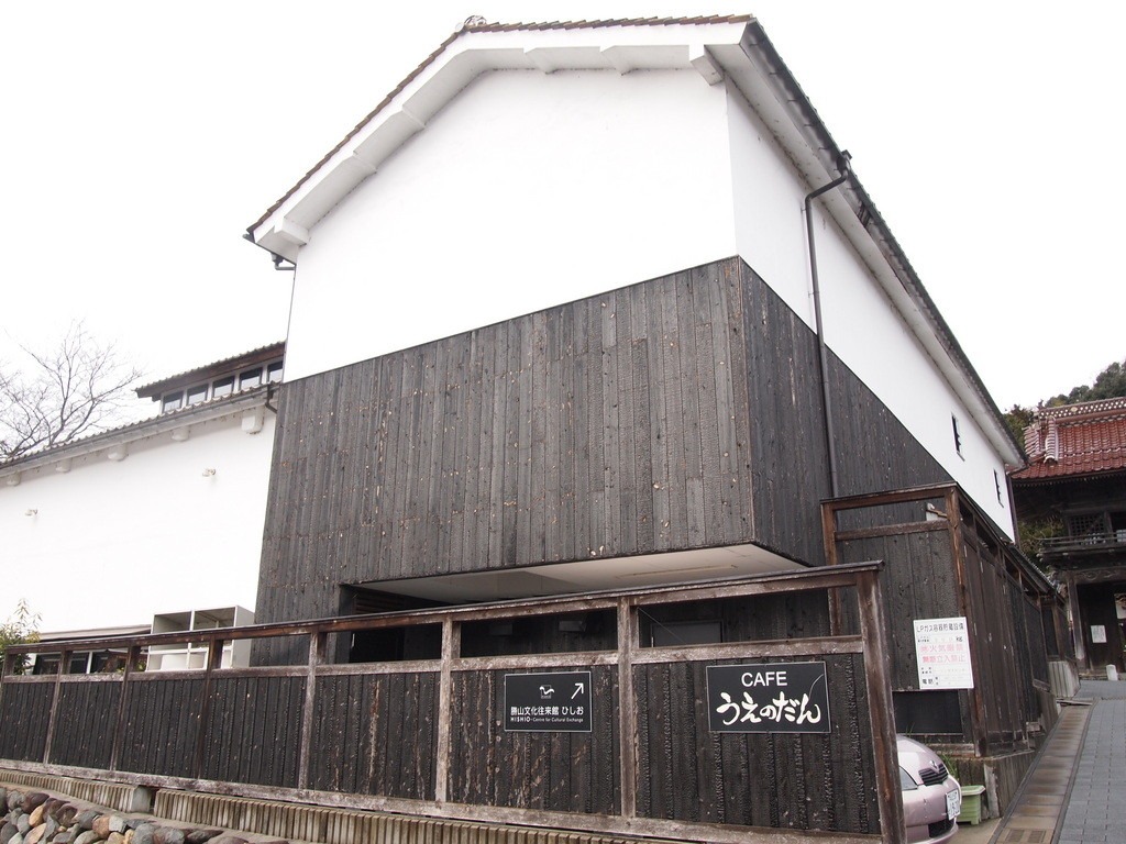 木をふんだんに使い、古い瓦を再利用して白壁のモダンな外観です。館内の「ひしお喫茶」では、お食事や手づくりスイーツを楽しめます。