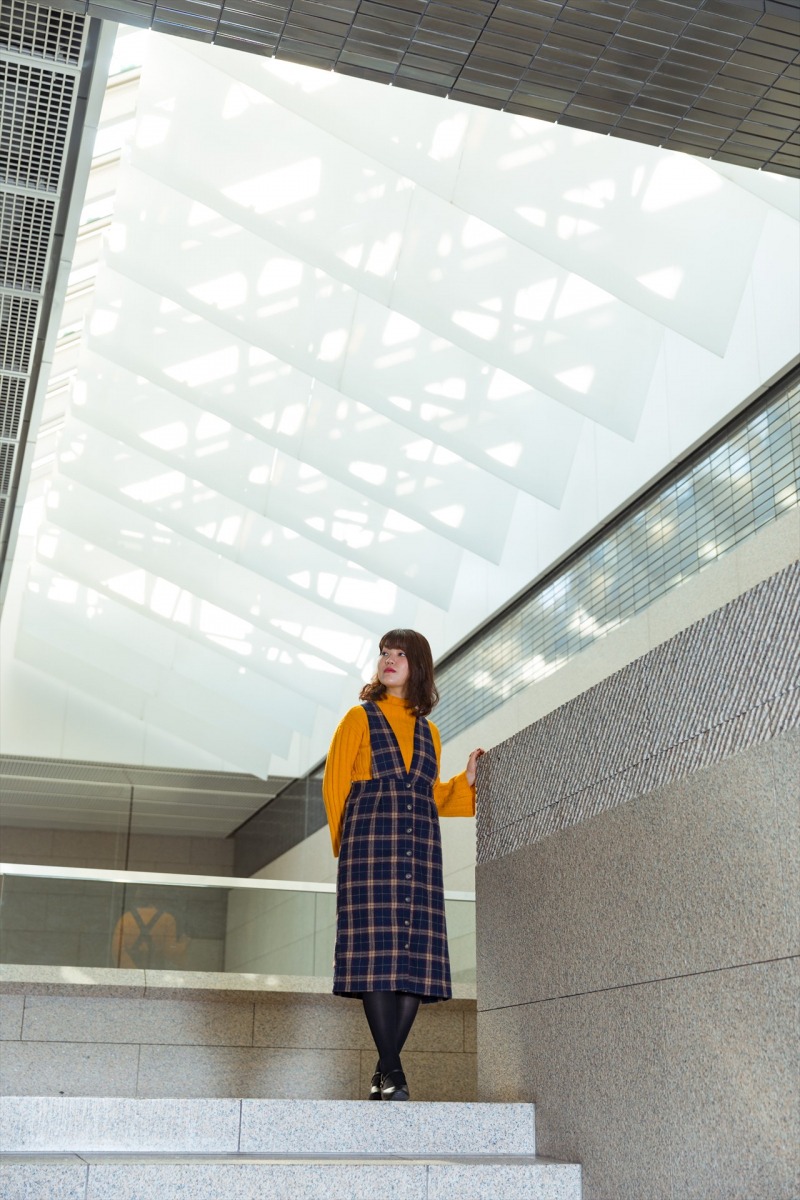 同じ設計者である岡田氏の岡山市立オリエント美術館が壁の集合によって建築を表しているのに対し、岡山県立美術館は量塊の集合によって建築を表しています。2階展示場に向かう階段から見えるトップライトは、アートフォーラム(屋内広場)を木漏れ日のような柔らかな光で照らしてくれます。
