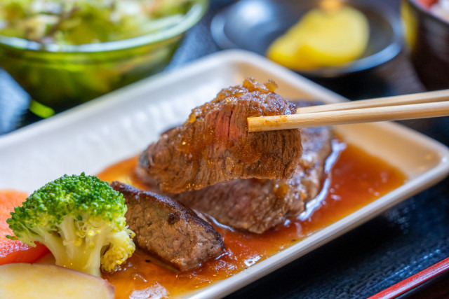 新見市内移動して、黒毛和種のブランド牛肉「千屋牛」で1日目を締めくくる豪華なディナー!焼肉、ステーキ、丼など、お好みの形で千屋牛を味わってください。