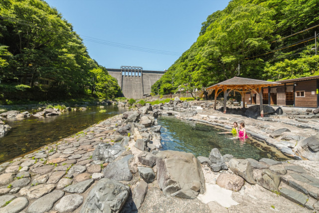 川底から湧き出る天然の大露天風呂「砂湯」を満喫