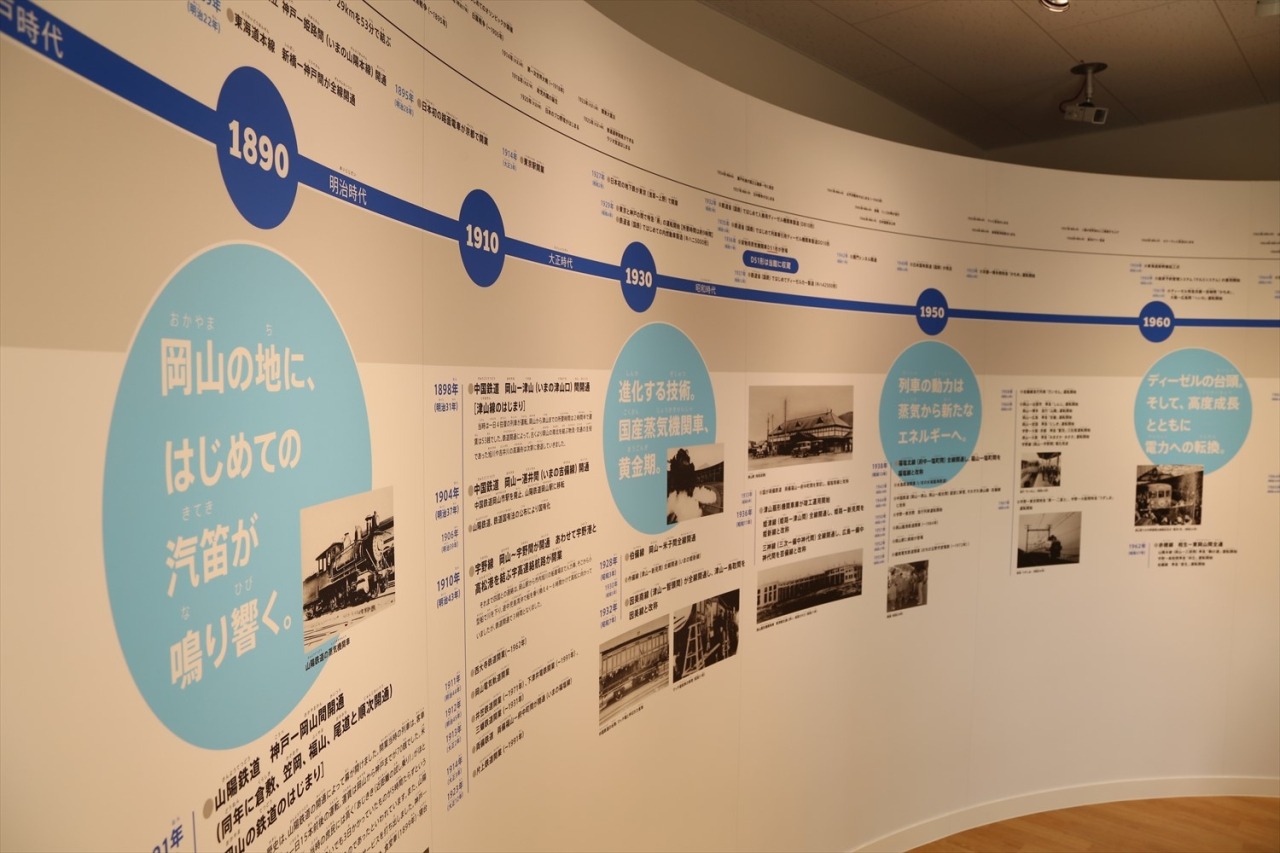 津山まなびの鉄道館は、旧津山扇形機関車庫として車両、転車台、蒸気機関車の動輪など展示するスペースと、岡山の鉄道の歴史や、鉄道のしくみを体験しながら学べるスペース、さらに、津山の街並みをジオラマ展示したスペースで構成されています。1936年に建設された旧津山扇形機関車庫は現存するものでは国内2番目の規模を誇る貴重な施設で、国内で1台のみ製造された大馬力のエンジンを積んだディーゼル機関車「DE50-1」が展示されるなど、鉄道ファン必見のスポットで、レトロな映えスポットとしても人気があります。