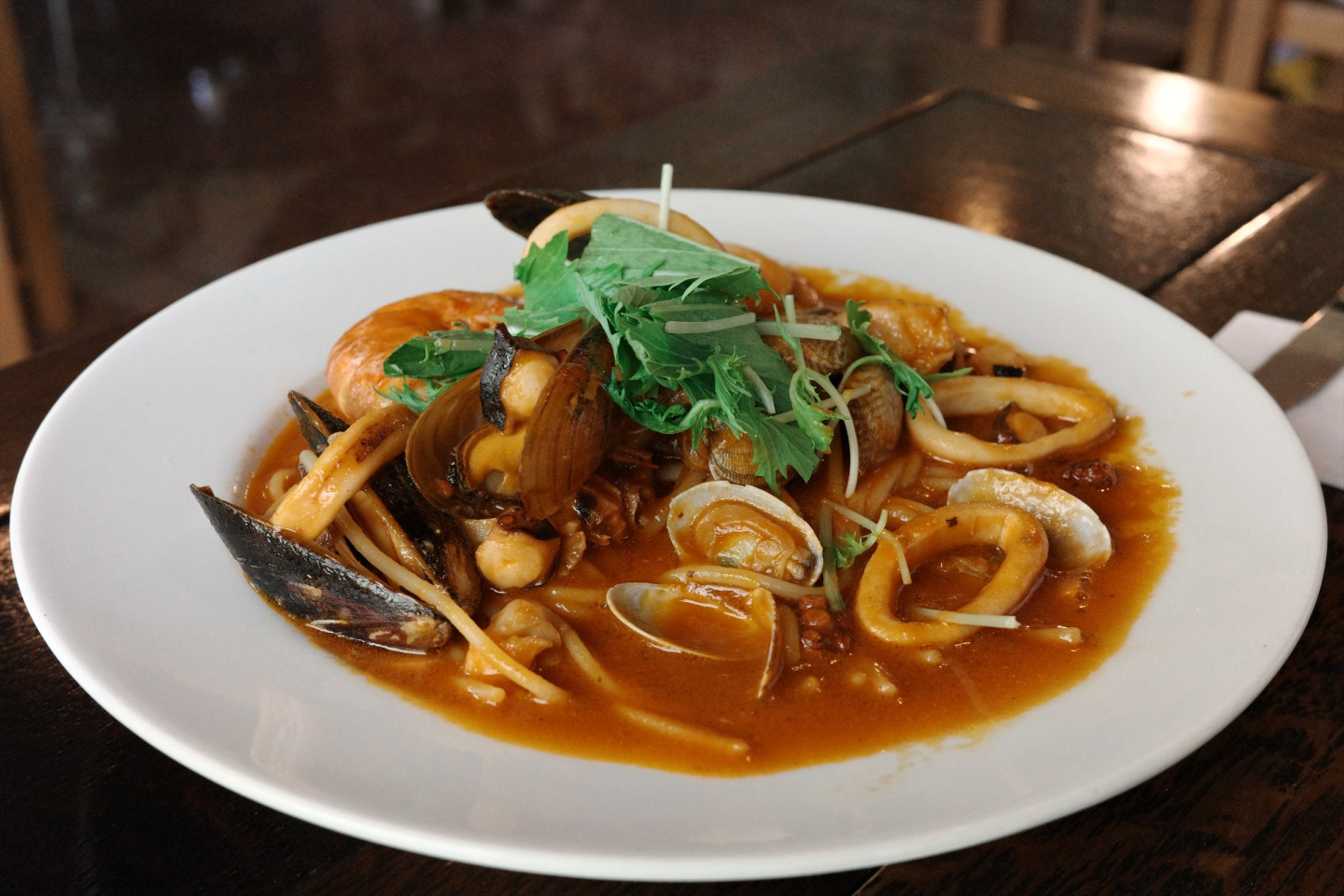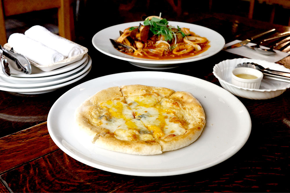 旅の始まりはランチ!7種のチーズピザ、天然赤海老のトマトクリーム