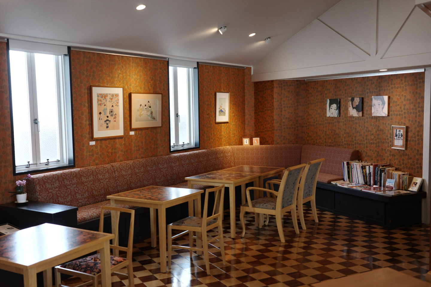 夢二郷土美術館 本館に隣接している体感型展示室兼カフェ。ショップに併設されており、おみやげを買うことができます。