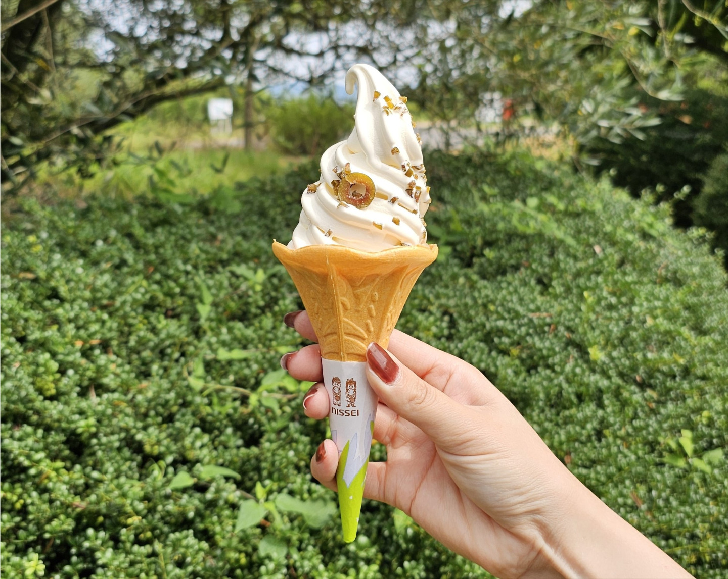 ショップではオリーブオイルの食べ比べできたりするんやけど絶対食べてほしいのがオリーブのソフトクリーム