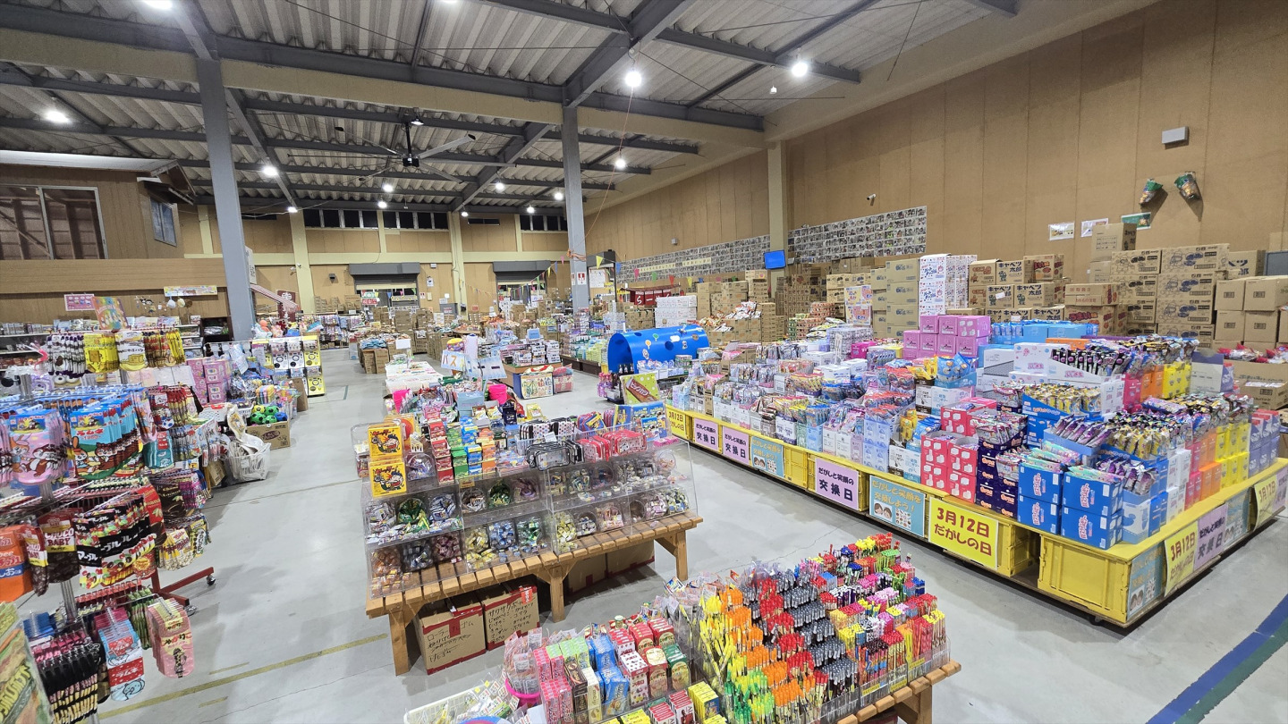 店内に菓子と玩具を合わせて約5,000種類が並ぶ「だがしコーナー」では、10円コーナーや懐かしコーナー、大人買いコーナーなどがあり、「縁日屋敷」では、花火や水鉄砲、お面やスーパーボールなどがあります。