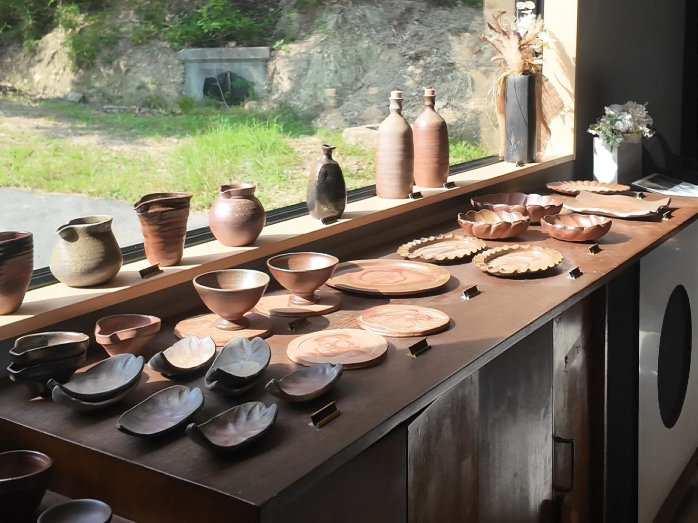 「大きな窓のそばに並べられてた陶器が美しすぎる。