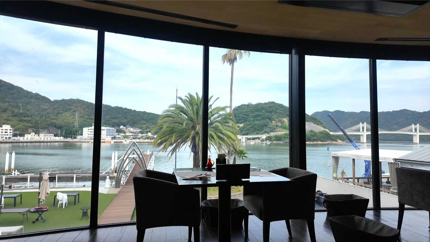 瀬戸内海を眺めながら食事を楽しめるレストラン。瀬戸内海の神聖な海の幸と季節の食材を使ったイタリアンを提供。