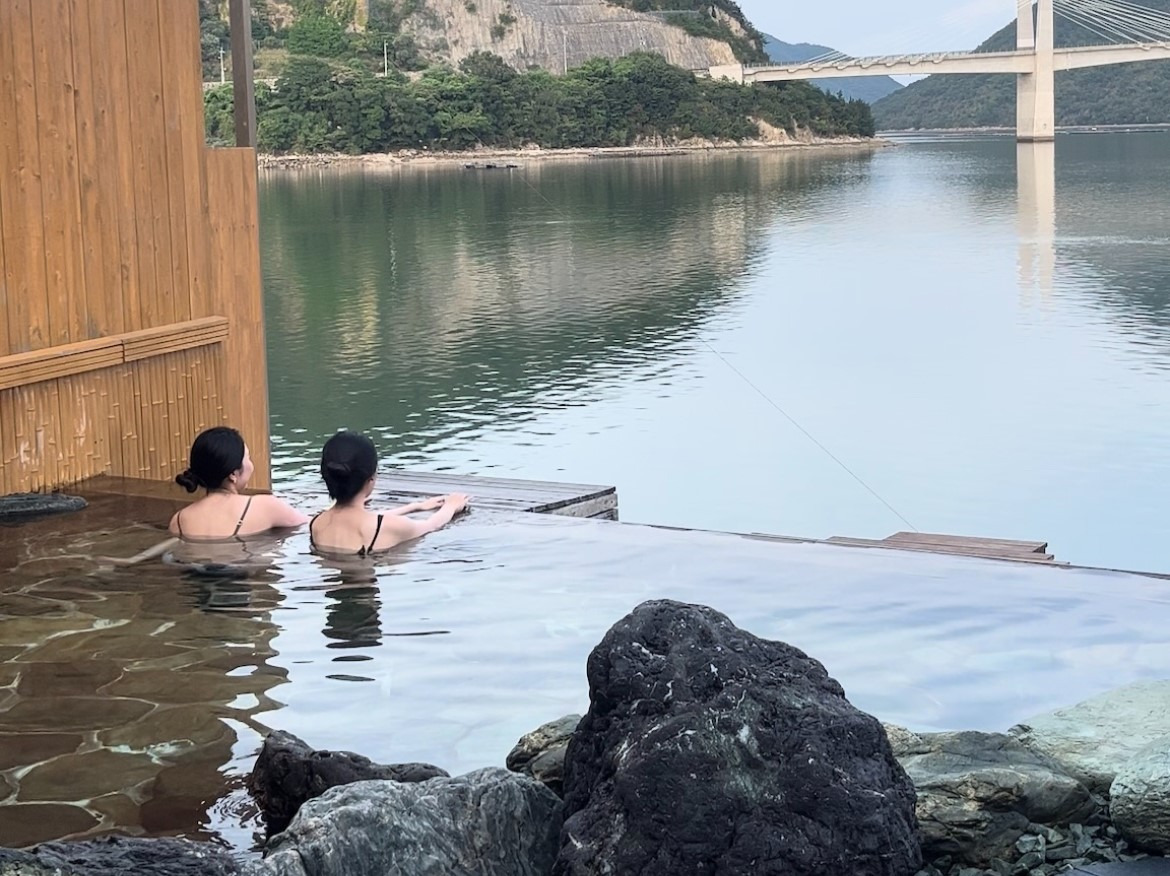 海に面した天然温泉からの眺めは、備前♡日生大橋と日生湾を一望できます。