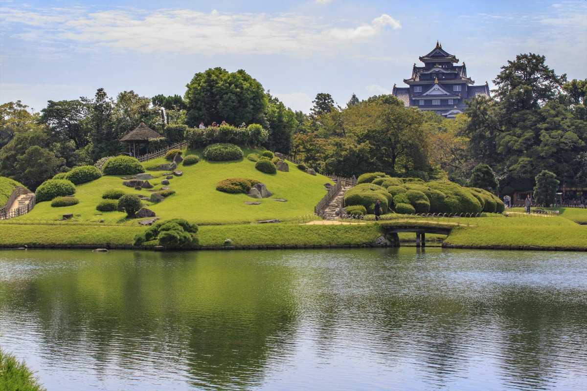 岡山藩2代目藩主・池田綱政(つなまさ)が自ら憩いの場として築いた大庭園。季節の花が彩る広々とした園内は江戸時代さながらの別世界。1952年には歴史的文化遺産として“特別名勝”に指定され、ミシュラン・グリーンガイド・ジャポンでは三つ星の評価を得ています。四季を通じて茶つみや月見など様々な行事が催されているほか、期間限定で昼間とは趣を変えて園内をライトアップする夜間特別開園「幻想庭園」を楽しむことができます。ボランティアガイド(無料)も観光客に好評です。