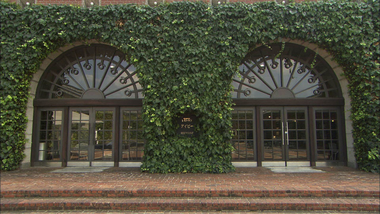 工場時代に温度管理のために植えられた蔦は、アイビースクエアの象徴となっています。