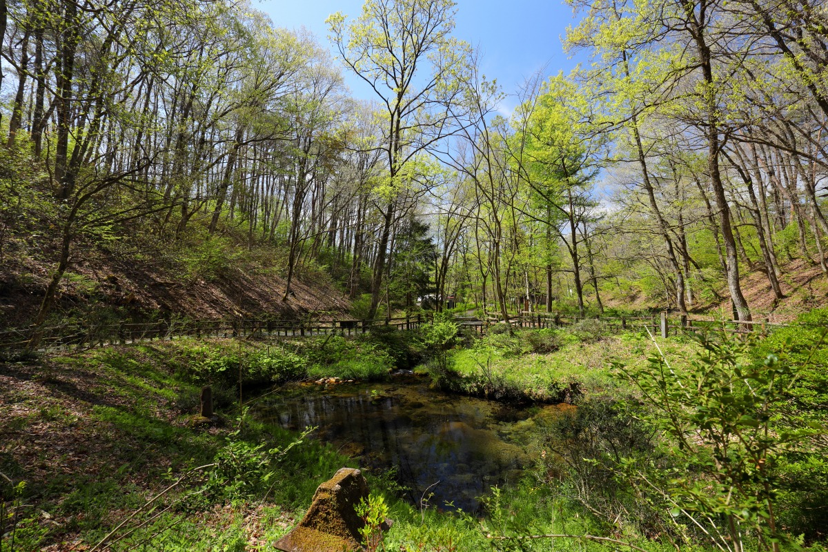 池の中には、ふたのない巻貝モノアラカイや寒冷に育つキクラゲ様の珍しい藻類も生育しています。昭和60年には名水百選(環境庁)に認定され、地元塩釜奉賛会が中心となって管理しており、村内の約600世帯が、生活用水として利用しています。