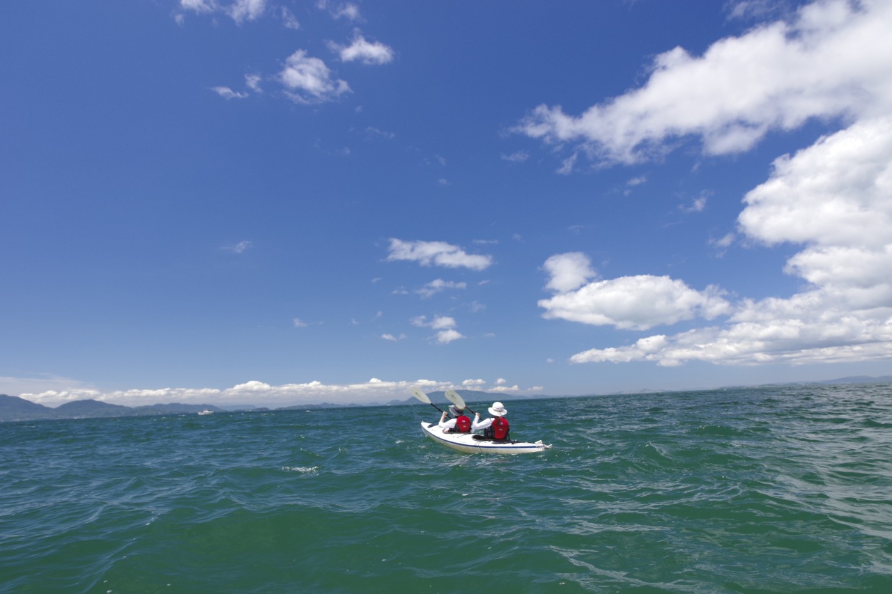 暑い夏にぴったり。瀬戸内海は風が穏やかで、海上を散歩するような感覚で漕ぐことができます。はじめに船への乗り込み方、パドルの持ち方、舵の操縦の仕方を指導してくれるので初めての方でも安心です。潮の流れが速かったり、波が高いところがあったりと時にスリルを味わうこともありますが友達と力を合わせてゴールを目指して行きましょう。運が良ければスナメリクジラに遭遇することができるかもしれません。