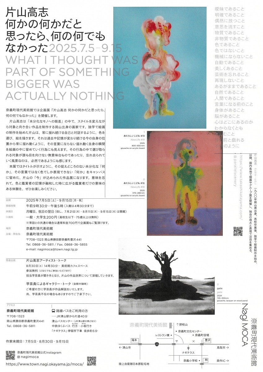 奈義町現代美術館にて企画展「片山高志展 何かの何かだと思ったら、何の何でもなかった」が開催されます。