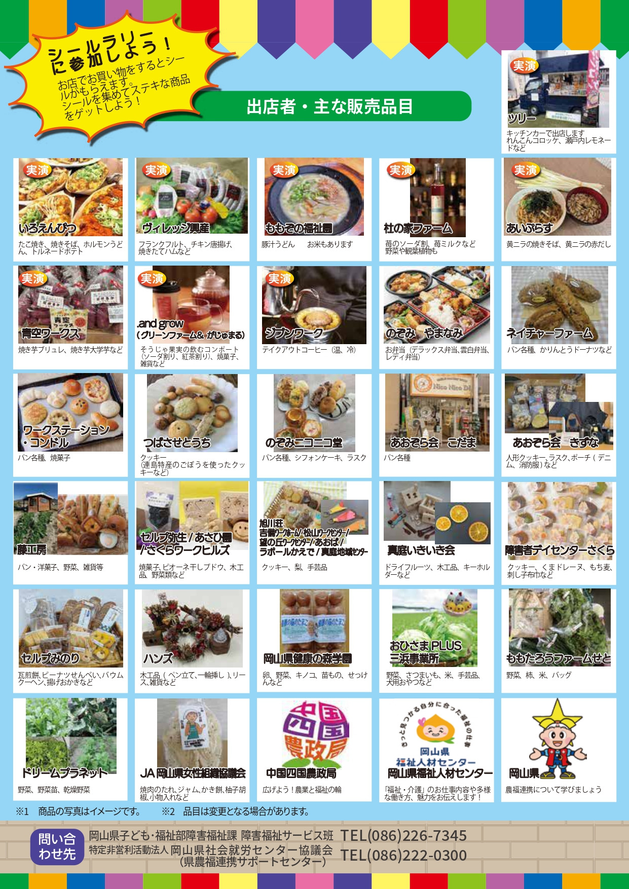 真庭いきいき会、障害者デイセンターさくら、セルプみのり、ハンズ、岡山県健康の森学園、