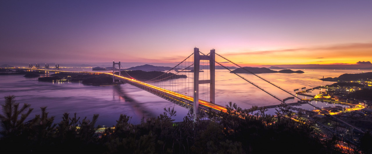 |穏やかな瀬戸内の多島美に架かる瀬戸大橋の景色