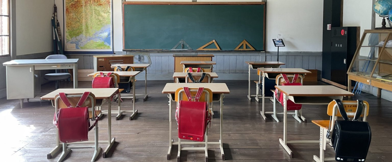 |入場して昔ながらの小学校フォトセッション