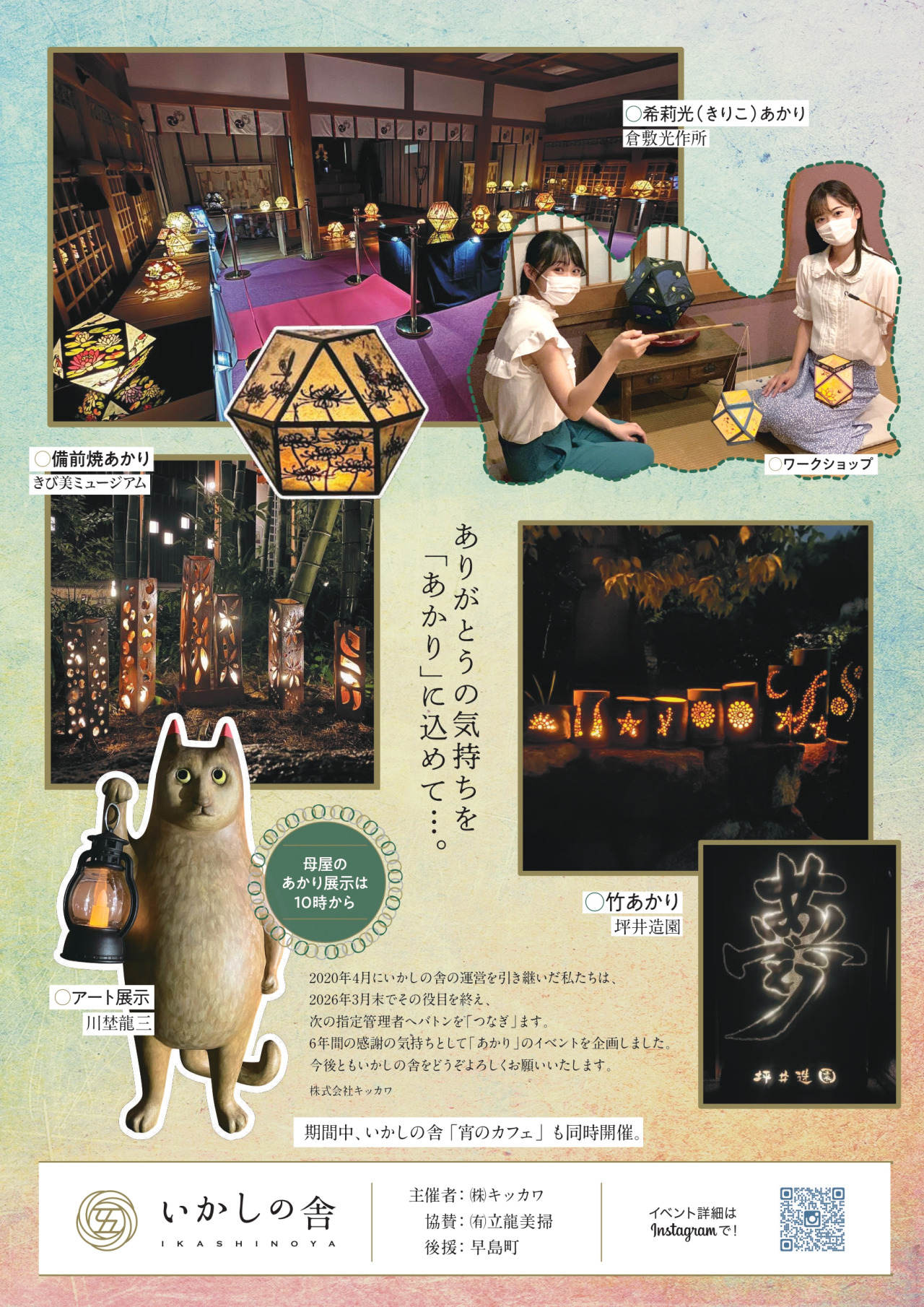 早島町いかしの舎を運営していた指定管理者が、2026年4月1日からは早島町によって新たに選定された事業者に引き継がれます。ご愛顧いただいた皆さまに感謝の気持ちを込めて、イベントが企画されました。