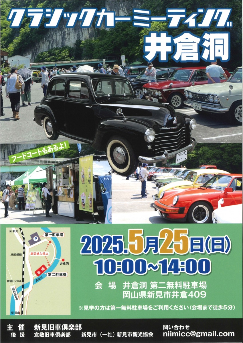 往年の名車、旧車が一堂に集まる交流イベントが井倉洞で開催されます。