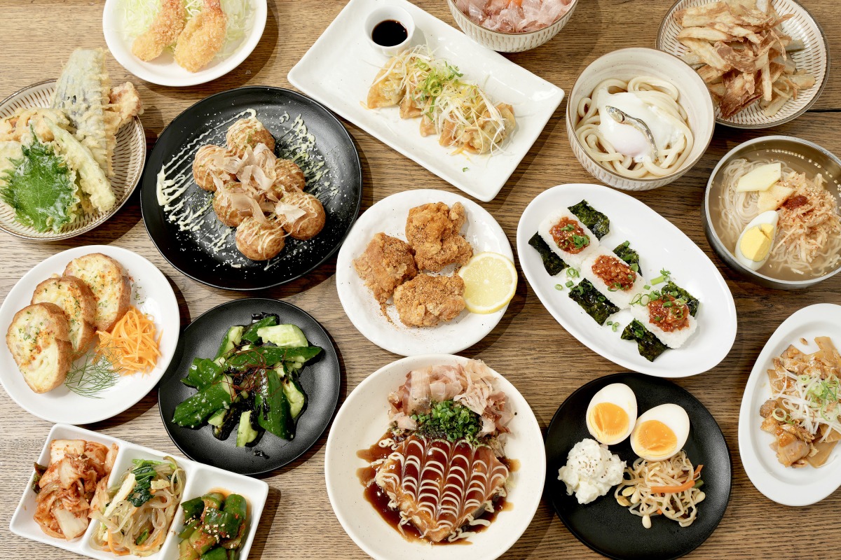 生ビールはもちろん、クラフトビールが週替わりで登場。岡山県内各地のこだわりの日本酒3種飲み比べもあります。杜の街プラザの各飲食店によるお酒にぴったりのおつまみメニューも用意されています。