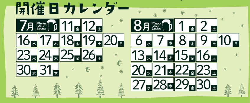 2025年7月11日(金)~8月30日(土)の期間中、下記の日付で開催されます。※荒天時は中止の場合あり。