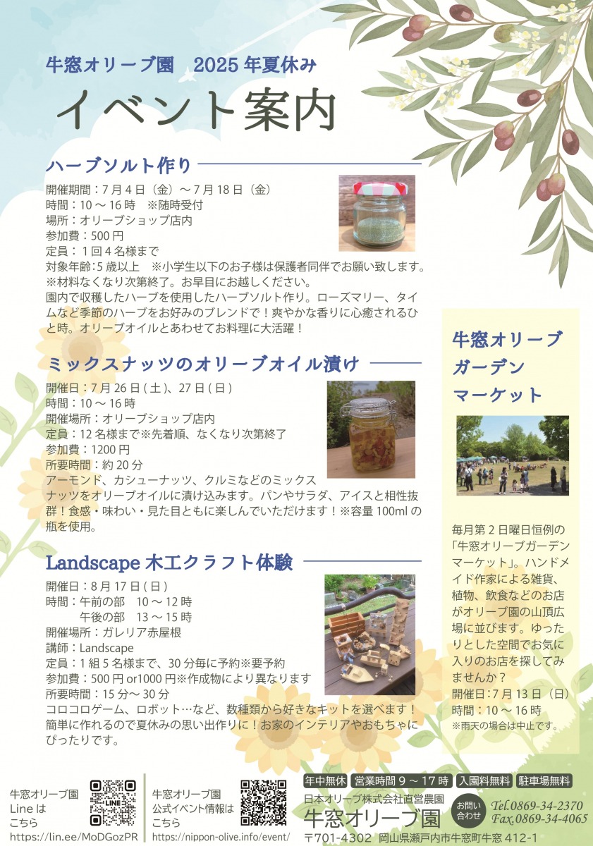 【要予約】牛窓オリーブ園「Land scape 木工クラフト体験」