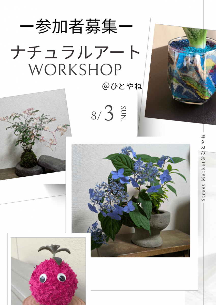 - 関連イベントのナチュラルアートワークショップの参加は予約が必要です。(申込方法:公式SNSのDM)