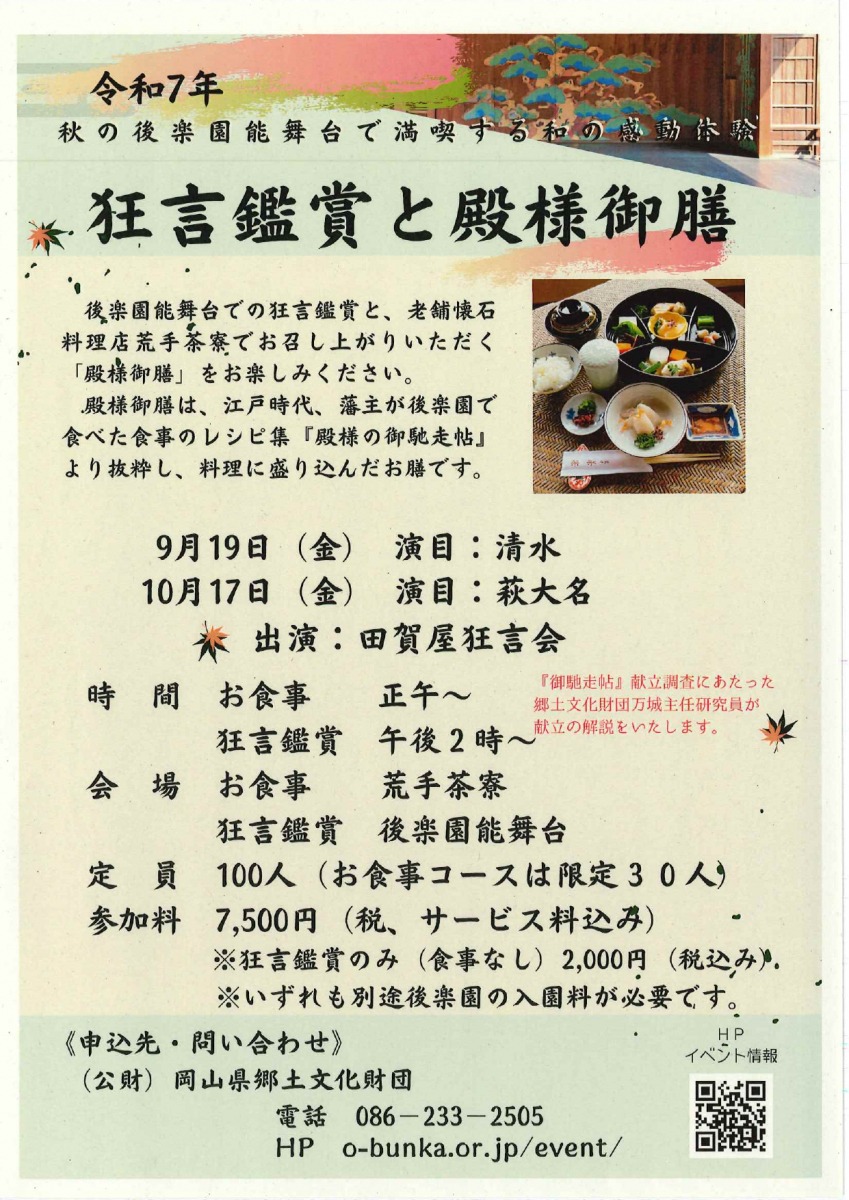 【要予約】和の感動体験 狂言鑑賞 岡山後楽園