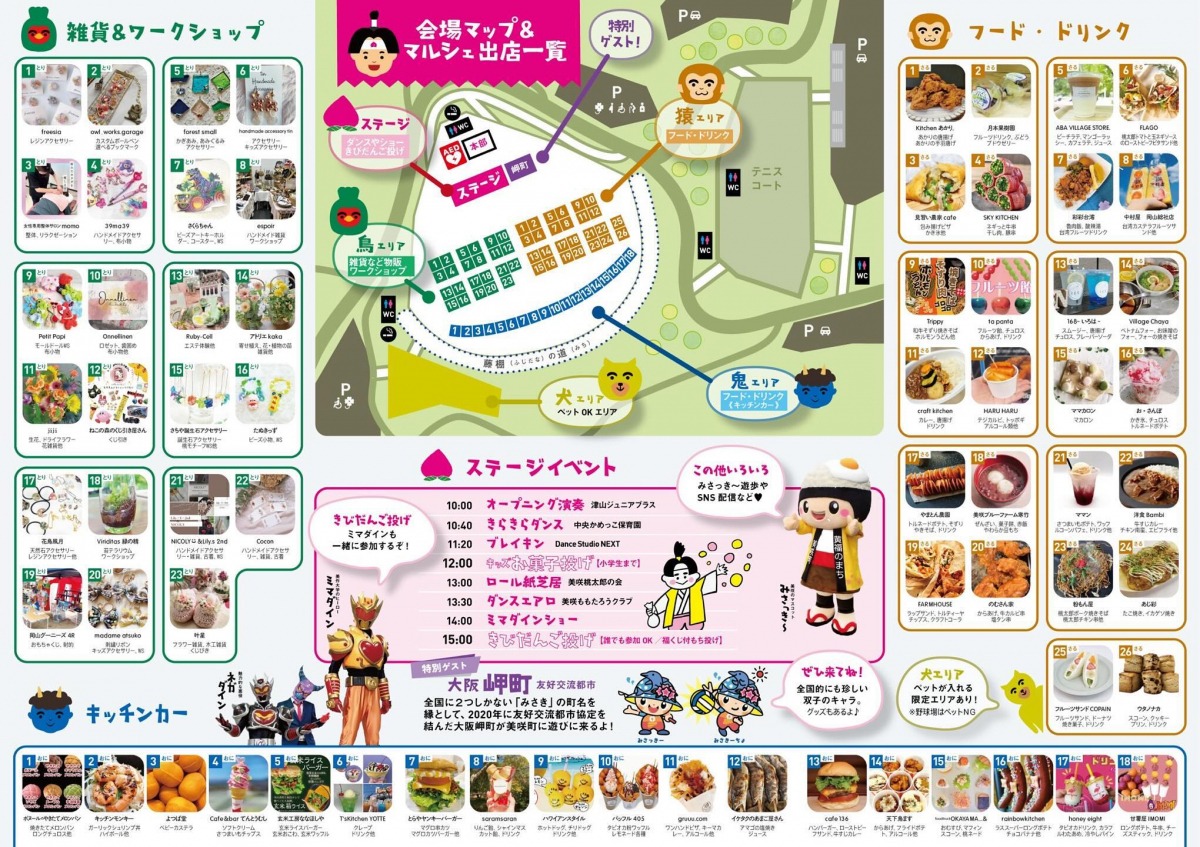 美咲町は桃太郎最古の書が見つかった元祖桃太郎の土地として、今でも桃太郎ゆかりの地名が残されています。美咲町を知ってもらおうということで2022年からはじまった「ももTARO EXPO」が今年も開催されます。雑貨&ワークショップ、フード&ドリンク、様々なステージイベントが楽しめます。