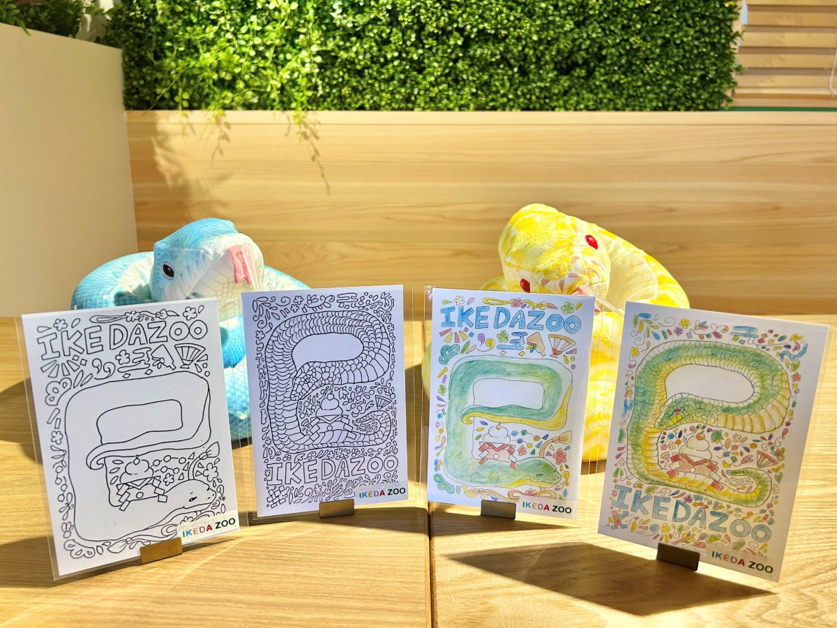 飼育員が描き下ろした、お正月限定のポストカード。色付き色なし合わせて全部で4種類。売り切れ次第販売終了。
