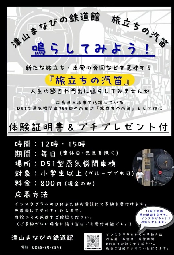 【要予約】津山まなびの鉄道館「旅立ちの汽笛」