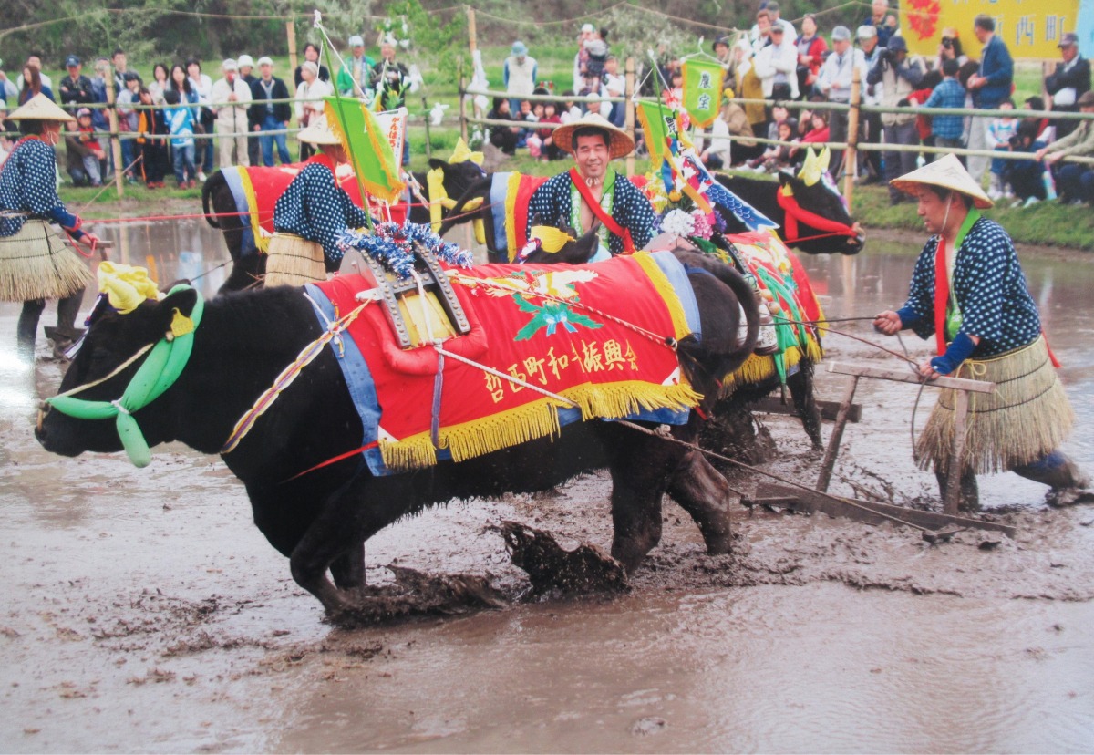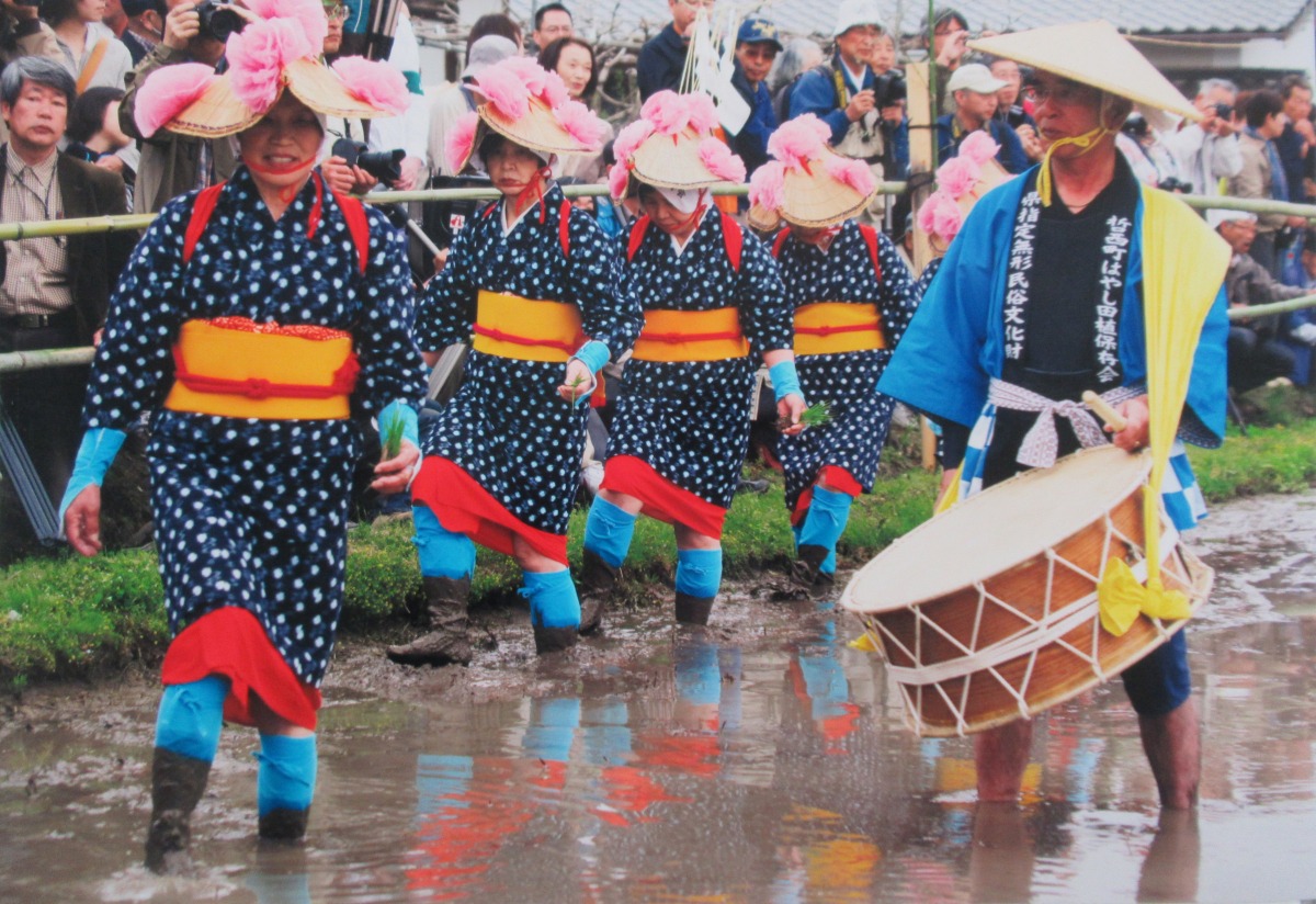 12:30 牛の代かき、追い込み、苗とり唄、太鼓田植、体験田植