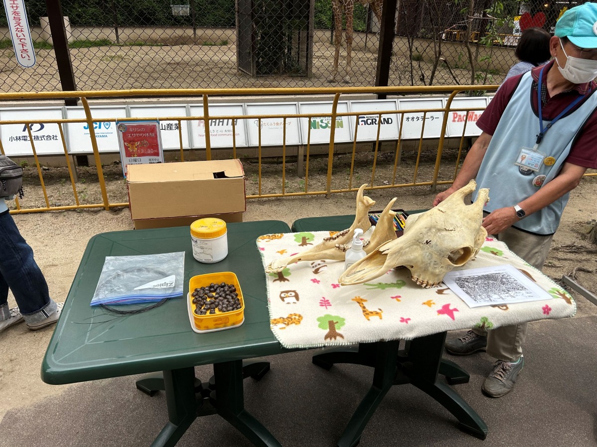 キリンの骨・毛・糞などの標本を使い、キリンの生態についてわかりやすく解説されます。