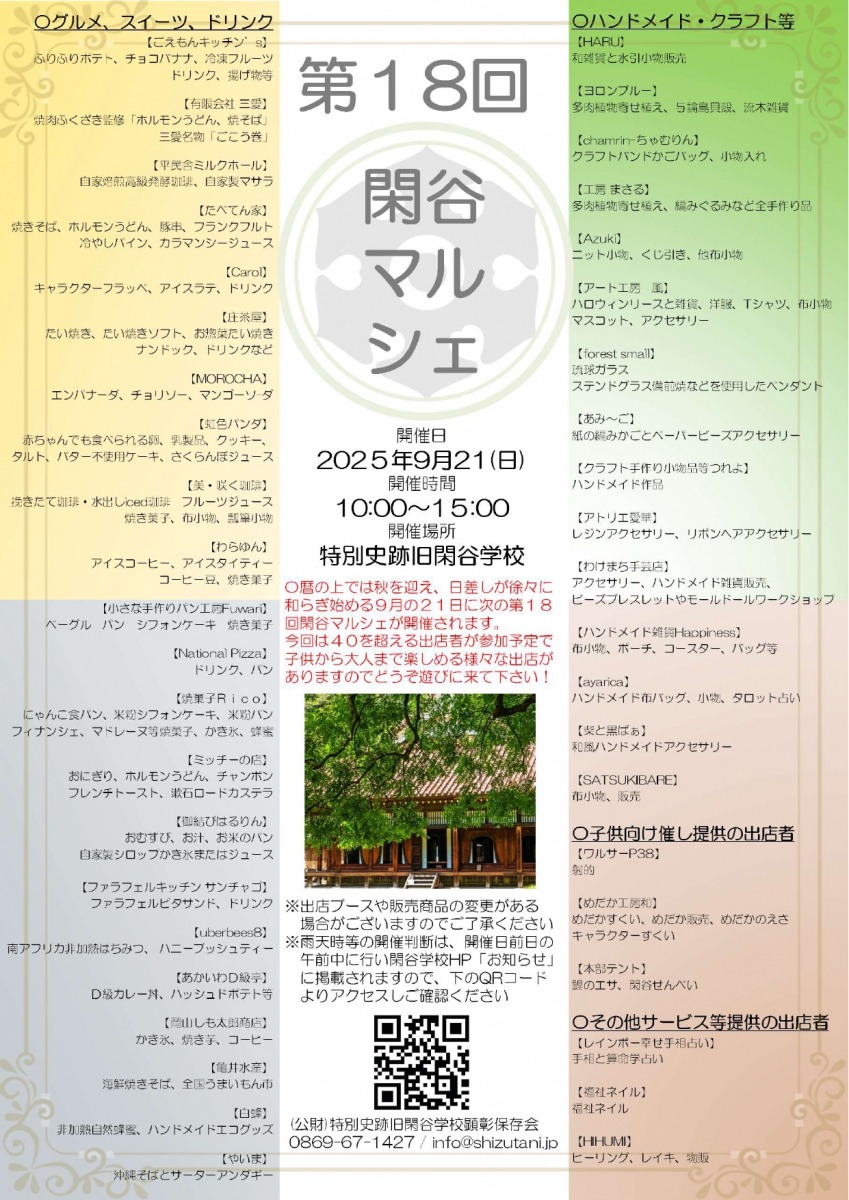 - 0869-67-9900(特別史跡旧閑谷学校顕彰保存会)