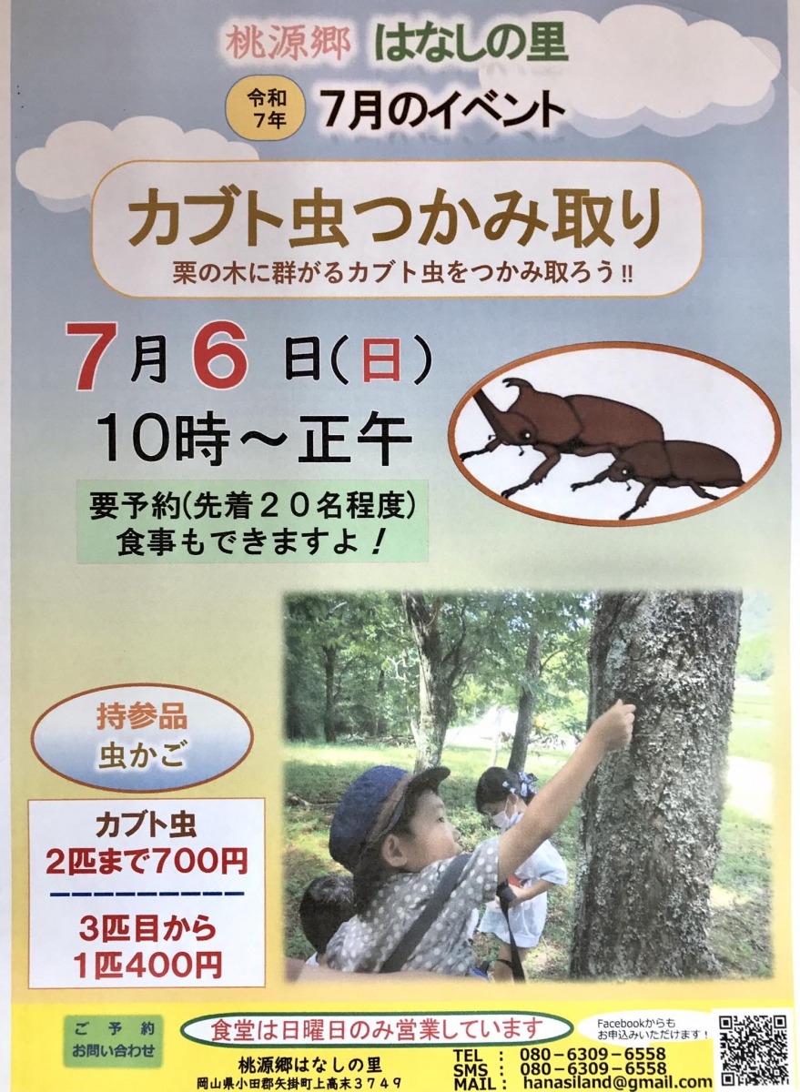 【要予約】桃源郷はなしの里「カブト虫つかみ取り」